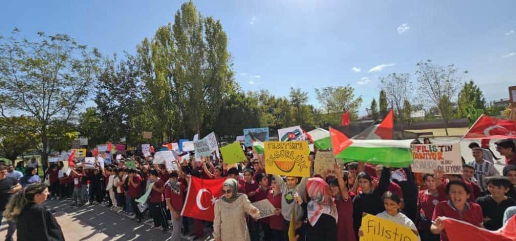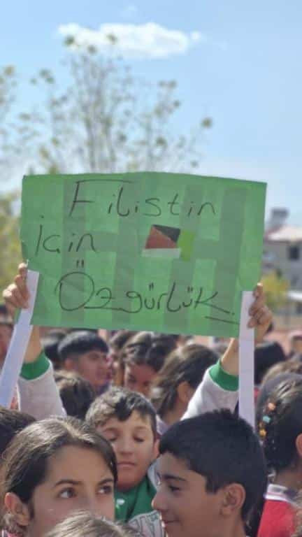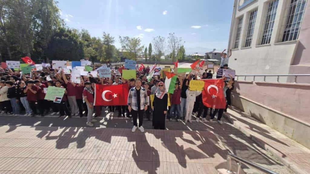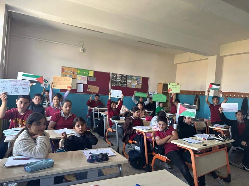 Mimar Sinan Ortaokulu’nda Filistin’de yaşanan insani krizlere dikkat çekmek amacıyla “Filistin Farkındalık Etkinlikleri” gerçekleştirildi. Etkinlik kapsamında öğrenciler, hazırladıkları afiş, pankart ve slogan kartlarıyla Filistin halkına destek mesajı verdi.